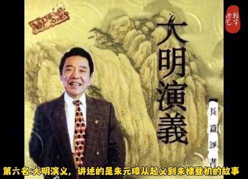 ·第六名:大明演义,讲述的是朱元璋从起义到朱棣登基的故事,共计312回,推荐指数3颗星。