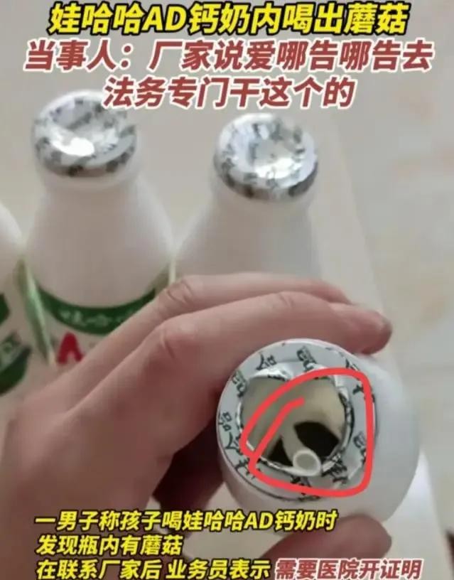 男子称娃哈哈AD钙奶内喝出蘑菇 厂家回应:爱到哪告哪告去