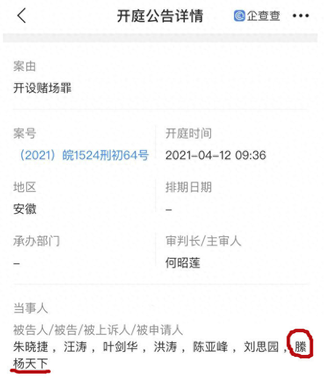 因开设赌场罪,滕扬天下于今年4月份被判三年有期徒刑,缓期执行。