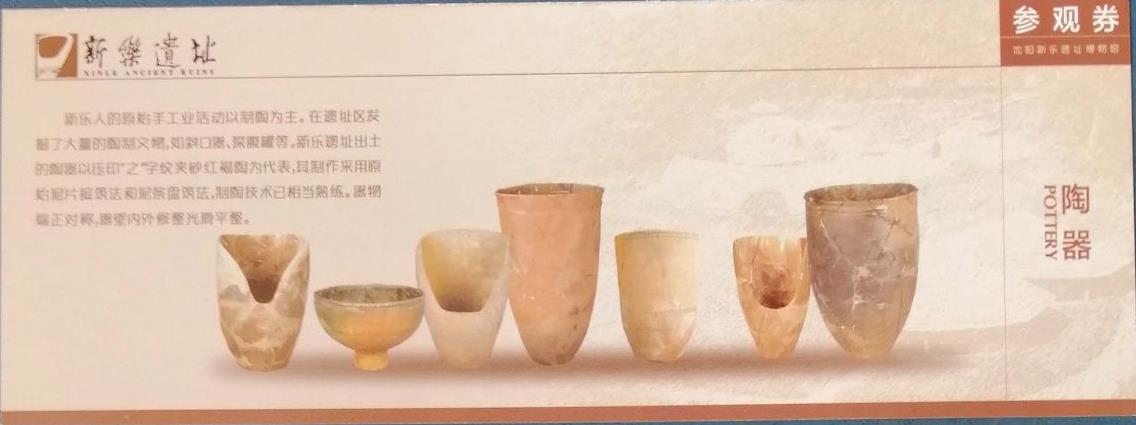 从一九七三年开始进行考古发掘,经过几代考古人的努力,出土文物相当丰富,石器有磨制精细的石斧、石凿、磨盘、磨棒、刮削器等,陶器有之字纹深腹罐、高足钵、簸箕形器等。而且发现 新乐 人所用陶器许多是叠摞在一起而未使用,证明这是生产出来储存在一起的。如在第二次发掘出土的陶器大部分集中出土于房址内 东北 角,少数在四周柱洞附近,而且大小不同地倒置套在一起。这些陶器印纹清晰,像是储备之物。在集中出土骨器的附近,地面上堆放着细沙,这些细沙很可能是制作陶器所用的掺合料。一些骨器作为制陶工具的可能性也比较大”。这说明 新乐 遗址既是当年 新乐 人的居住地,也是他们的制陶作坊。从这些出土陶器中,更可见7200年前的 新乐 人在陶器制作上已达到相当高的工艺水平,且器型多样、纹饰简约,表现了 沈阳 祖先高超的制陶技术与生存智慧。