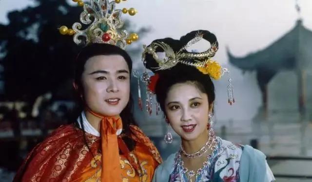 当时,两个人在拍摄时都有些紧张,那个时代造型还是比较保守,而女儿国国王"轻纱曼妙,外露香肩"造型对于朱琳来说也是很大的挑战。