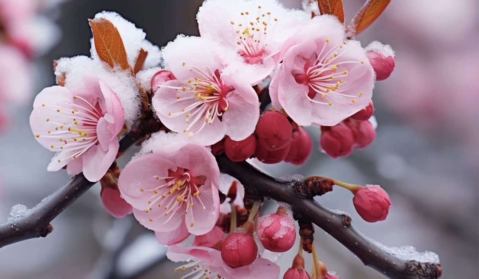 故作小红桃杏色,尚余孤瘦雪霜姿。