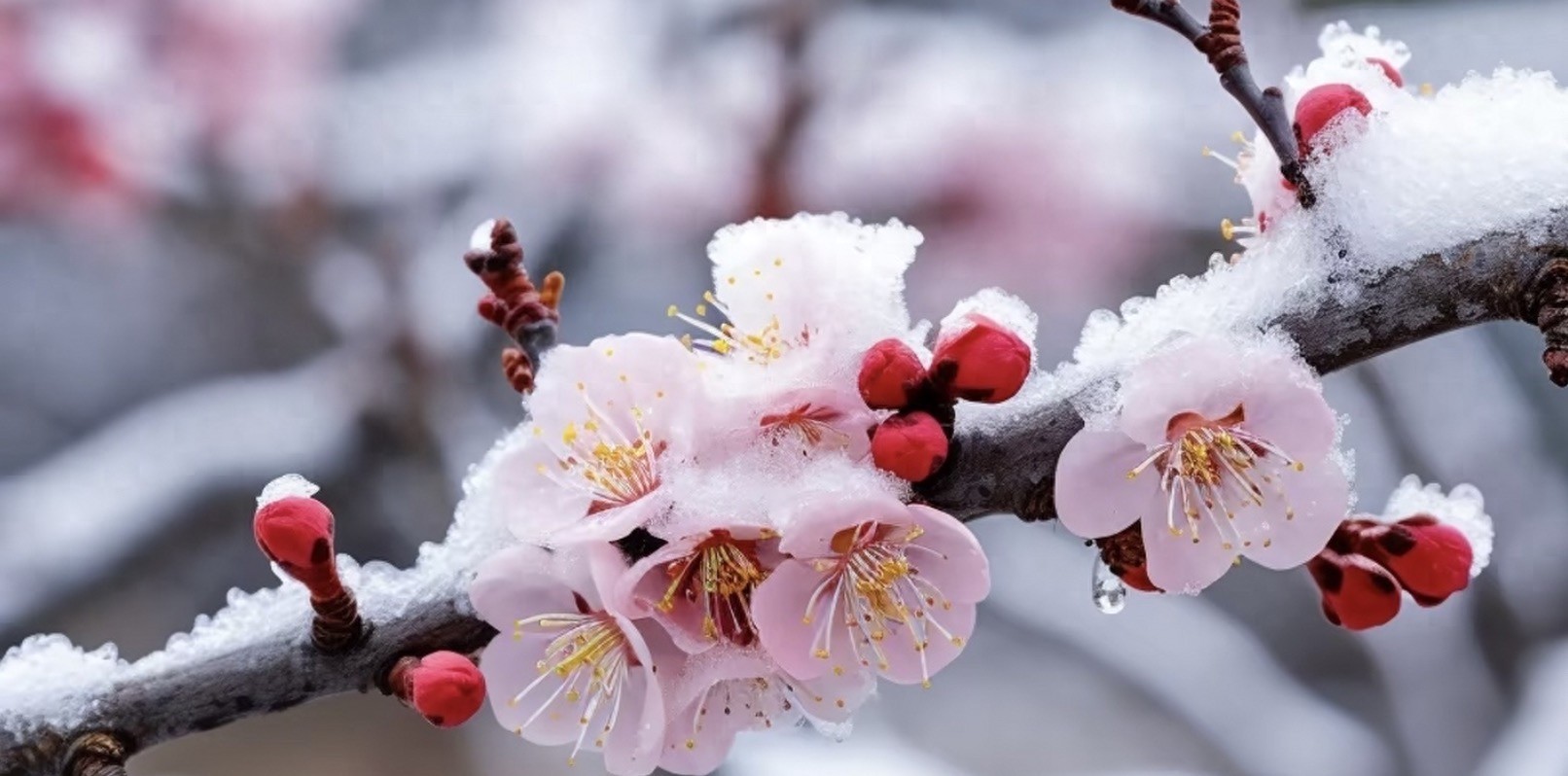 梅花被誉为“花中四君子”之首,于风雪之中傲然绽放,凌寒独自开,幽香沁人,品格高洁,梅花于严寒之中开天下之春。梅花坚韧不拔的精神,给人以奋发向上的激励。
