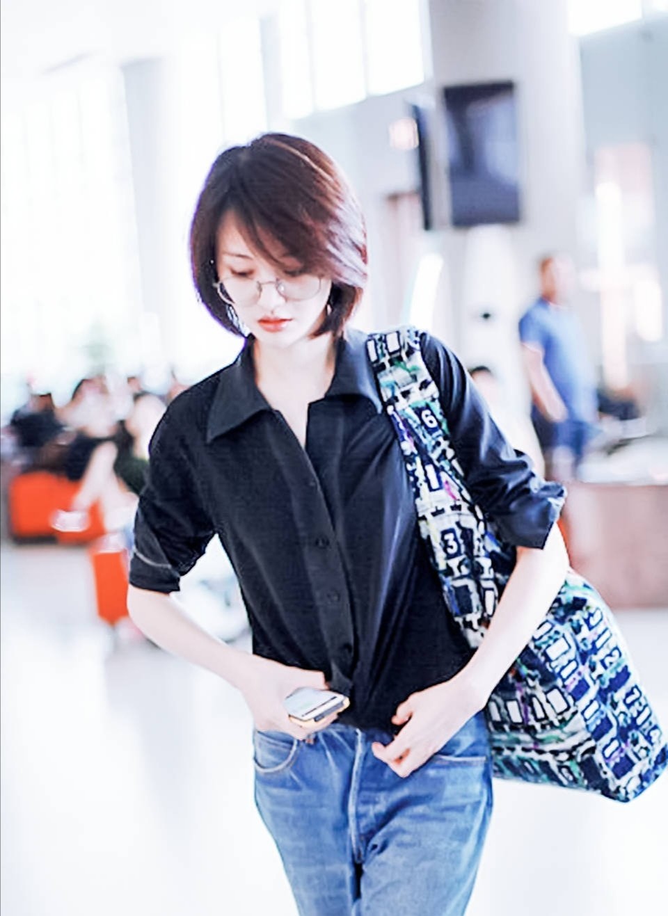 来看看之前郑爽的机场照,以前郑爽都是不拘一格,大多都是中性风格,什么T恤大裤衩,简单的黑衬衫,肥大的牛仔裤,随便一个帆布包,真的女明星里的清流。
