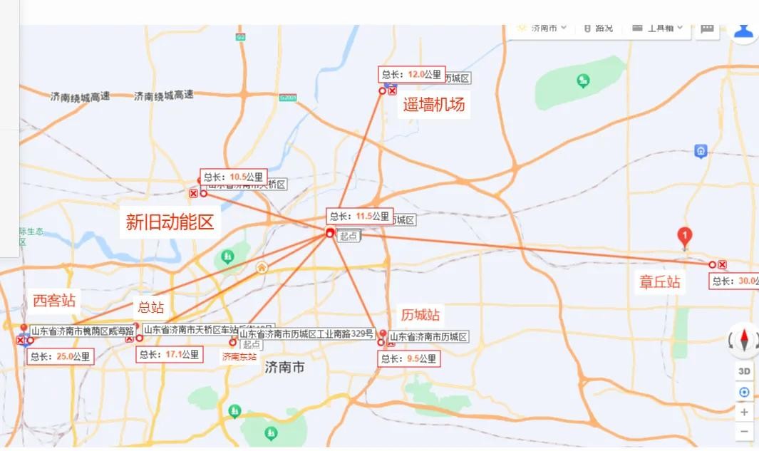 地理位置优越。在济南地图上看出,新东站的地理位置能够辐射全济南。直线距离,距离遥墙机场12公里、章丘站30公里、历城站9.5公里、新旧动能转换区10.5公里、济南西站25公里,济南总站17公里。新东站辐射30公里以内,全部是济南发展快速或者成熟的地段。
