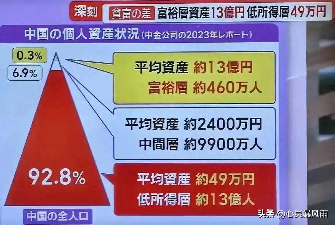 近日,日本朝日电视台引用所谓的“中金公司报告”,声称中国92.8%的人平均资产仅49万日元(约2.3万人民币),并借此大肆渲染中国贫富差距. 然而,这一报道存在诸多问题。