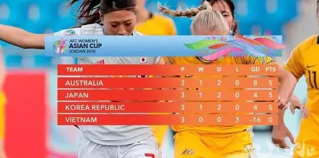 然而这个日本和澳大利亚打平的结果,最伤的恐怕就是与日本和澳大利亚同分的韩国,她们与日本净胜球数相同,只因少了一个进球无缘小组出线。她们需要通过与菲律宾进行一场附加赛,争夺最后一张女足世界杯的门票。