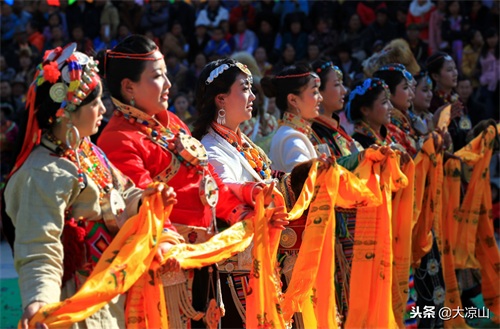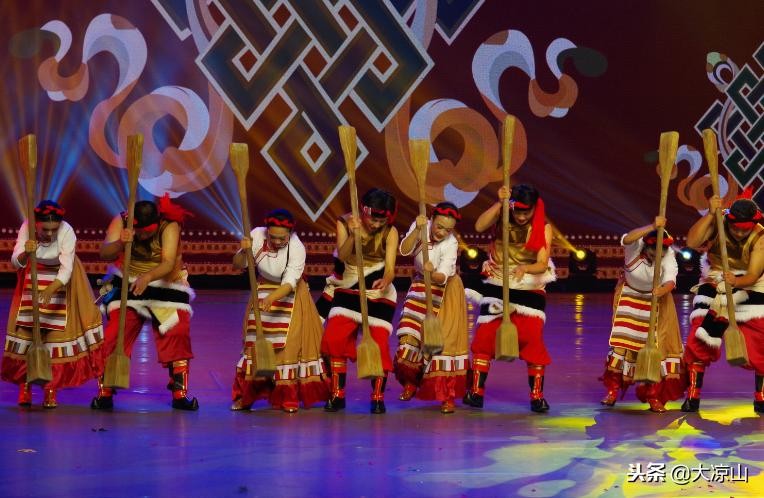 2018年凉山州第五届民族艺术节里木里藏族自治县表演的男女群舞《阿嘎欢歌》。宋明摄