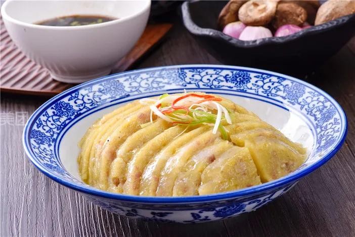 是山西定襄塞北的一种特色名吃,相传为当地进贡宫廷之贡品,现在也是当地民间宴席必备佳肴之一。其食材主要以精瘦猪肉为主,辅以淀粉、植物油及各种调味品制成,具有肉香扑鼻,多食不腻等特点,经常食用既补充必要的多种营养成份,又克服了肉类食品高脂肪、高胆固醇等弊病,做出来的有肉香却不见肉影的一种特色美食。此菜冷热均可食用,味道堪称一绝,现在做蒸肉的达上百家,其中以百年老店隆襄斋比较著名。