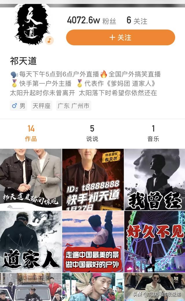 值得注意的是,目前快手并未封禁祁天道的账号,不过后者的页面上仅显示14个作品,以及5个说说。