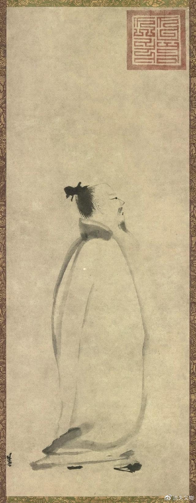 梁楷虽然所作“简笔画”不多,但这幅《李白行吟图》(纵81.2厘米,横30.4公厘米)对后世的影响却很大,现藏于日本东京国立博物馆。