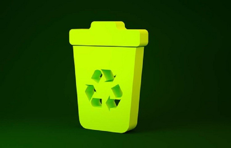 垃圾桶上表示可回收垃圾的绿色三箭头标志也构成了莫比乌斯环,三个箭头起伏并互相追逐推动,围绕中心旋转。