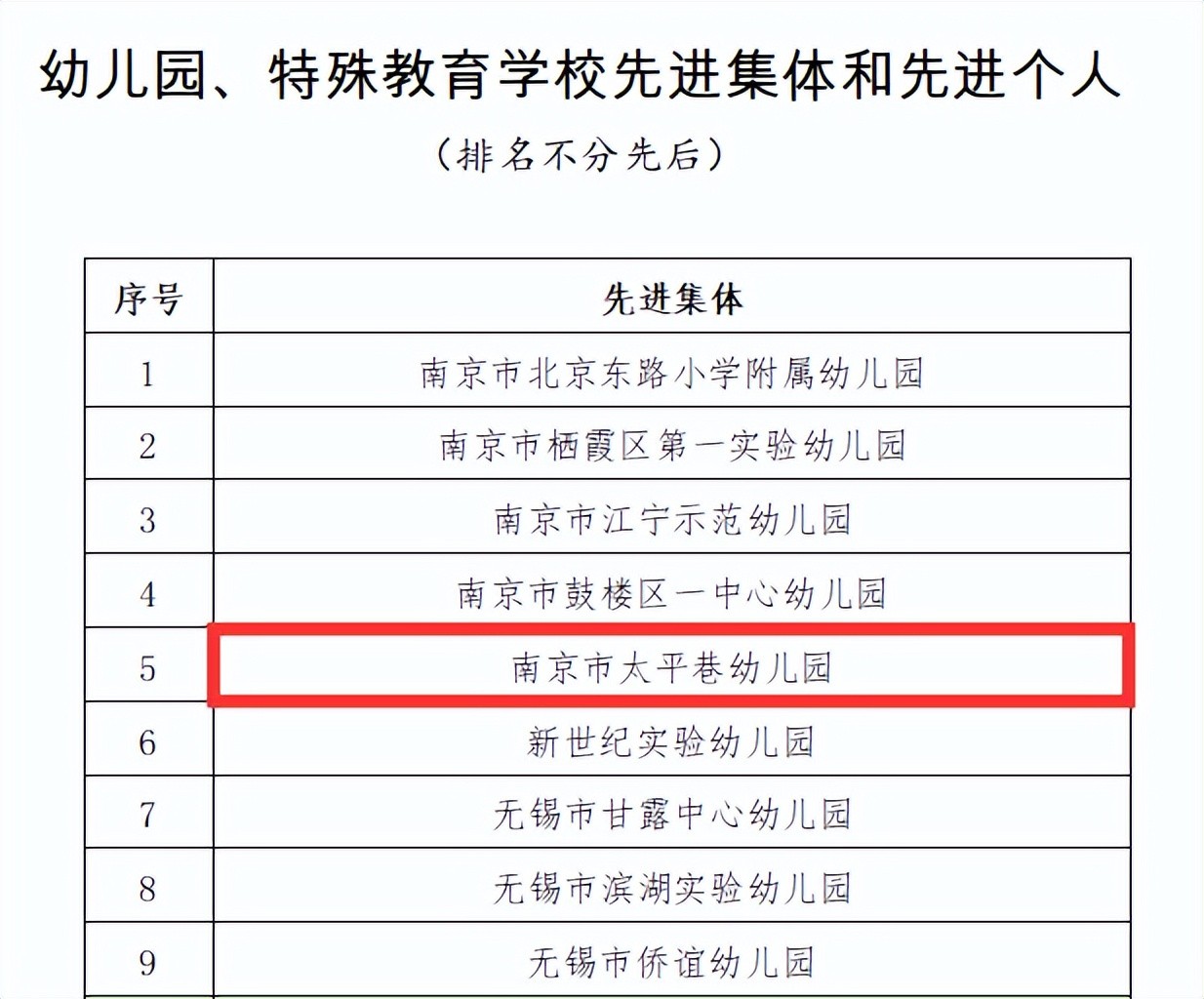 幼儿园、特殊教育学校先进集体