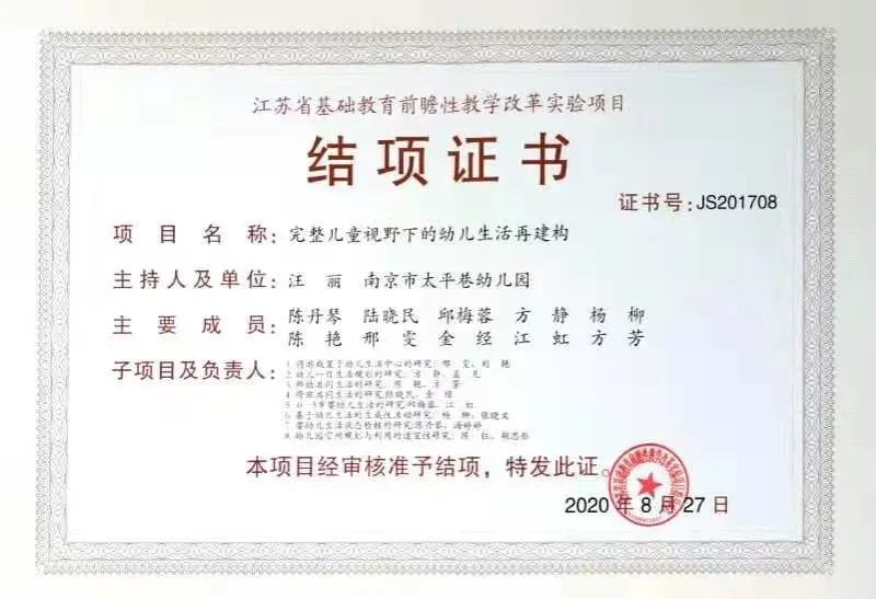 在“田野课程”研究成果获国家级教学成果二等奖、省教学成果特等奖、省教学成果一等奖的基础上,太幼的研究仍在持续……2020年,江苏省前瞻性教学改革项目“完整儿童视野下儿童生活再建构”成功结项,并获得好评。凝结着太幼课程智慧的专著《田野课程——深耕与超越》即将出版。