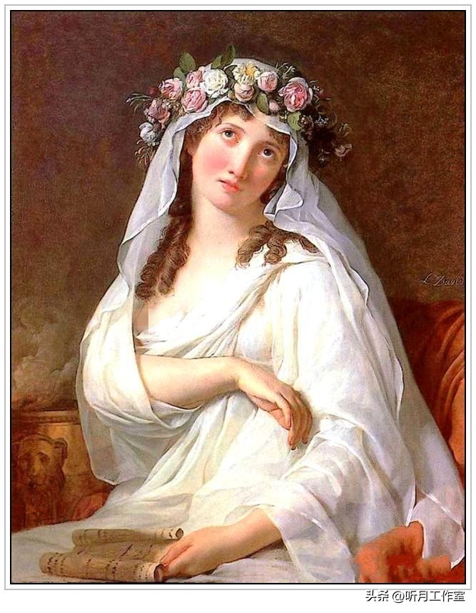 法国画家达维特《雷蒙德维尼那克夫人》布面油画,纵143厘米横110厘米,1799年作,法国卢浮宫藏。这幅画作展现了新古典主义的优雅与朴素之美,画中人物身着古典装束,背景简洁,透露出一种高贵而内敛的气质。