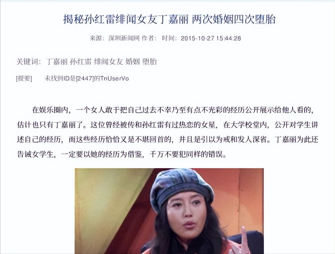 深圳新闻网:揭秘孙红雷绯闻女友丁嘉丽 两次离婚四次堕胎