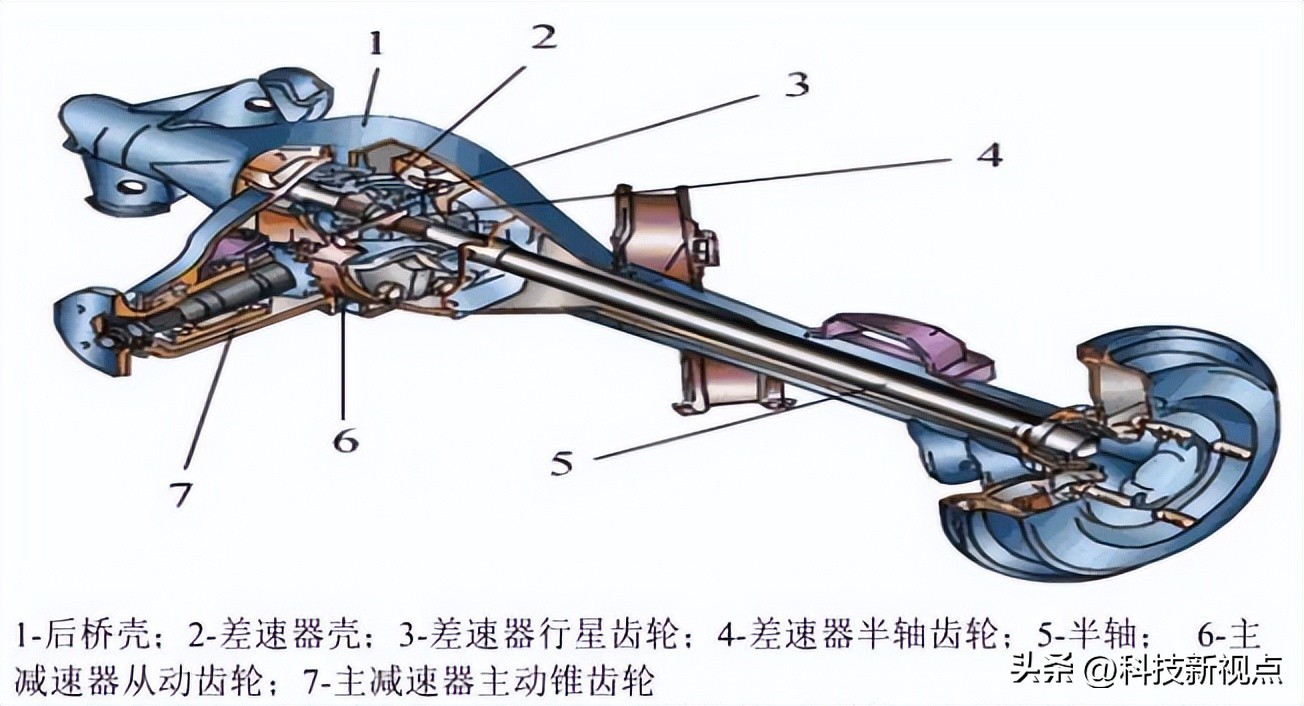 驱动桥将万向传动装置(或变速器)传来的动力经降速增扭、改变动力传递方向(发动机纵置时)后,分配到左右驱动轮,使汽车行驶,并允许左右驱动轮以不同的转速旋转。驱动桥是传动系的最后一个总成,它由主减速器、差速器、半轴和桥壳组成。