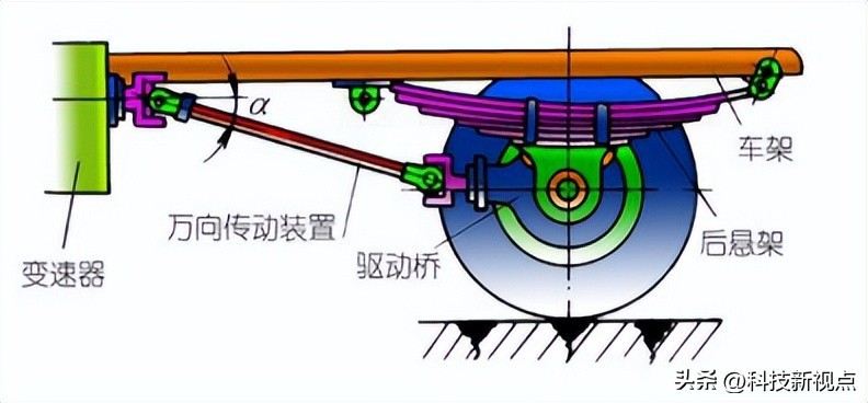 虽然变速器、离合器、分动器等都支撑在车架上,且他们的轴线也可以设计重合,但为消除车架变形及制造、装配误差等引起的轴线同轴度误差对动力传递的影响,其间也常装有万向传动装置。