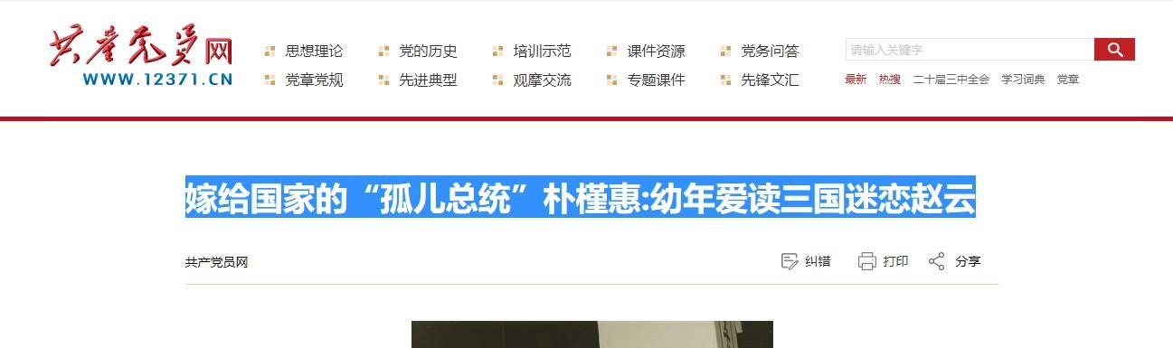 2,《嫁给国家的“孤儿总统”朴槿惠:幼年爱读三国迷恋赵云》共产党员网