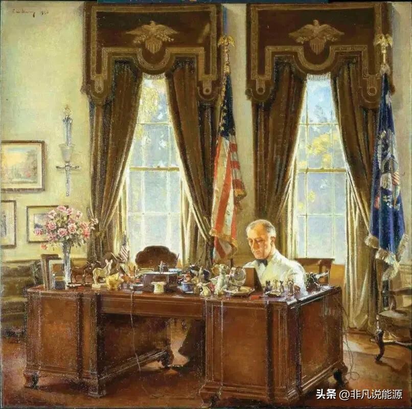 富兰克林·德拉诺·罗斯福在椭圆形办公室的办公桌前,海军中校爱德华·M·默里,1943年