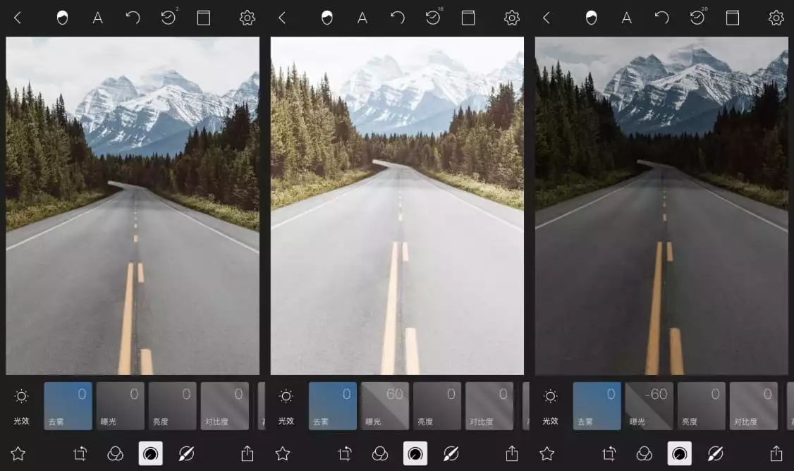 曝光:调整画面的明亮程度。提高曝光值会让画面变得更加明亮,整体显得干净而又轻盈;降低曝光值会让画面变得更加昏暗,整体显得沉重而又严肃。