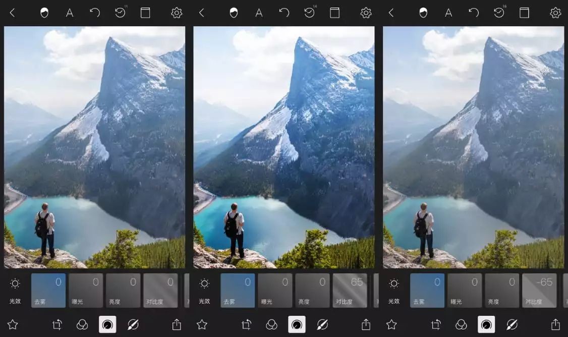 去雾:消除画面中的雾霾或为画面添加雾霾。提高去雾值,让画面更加通透自然;降低去雾值,为画面加入雾气。