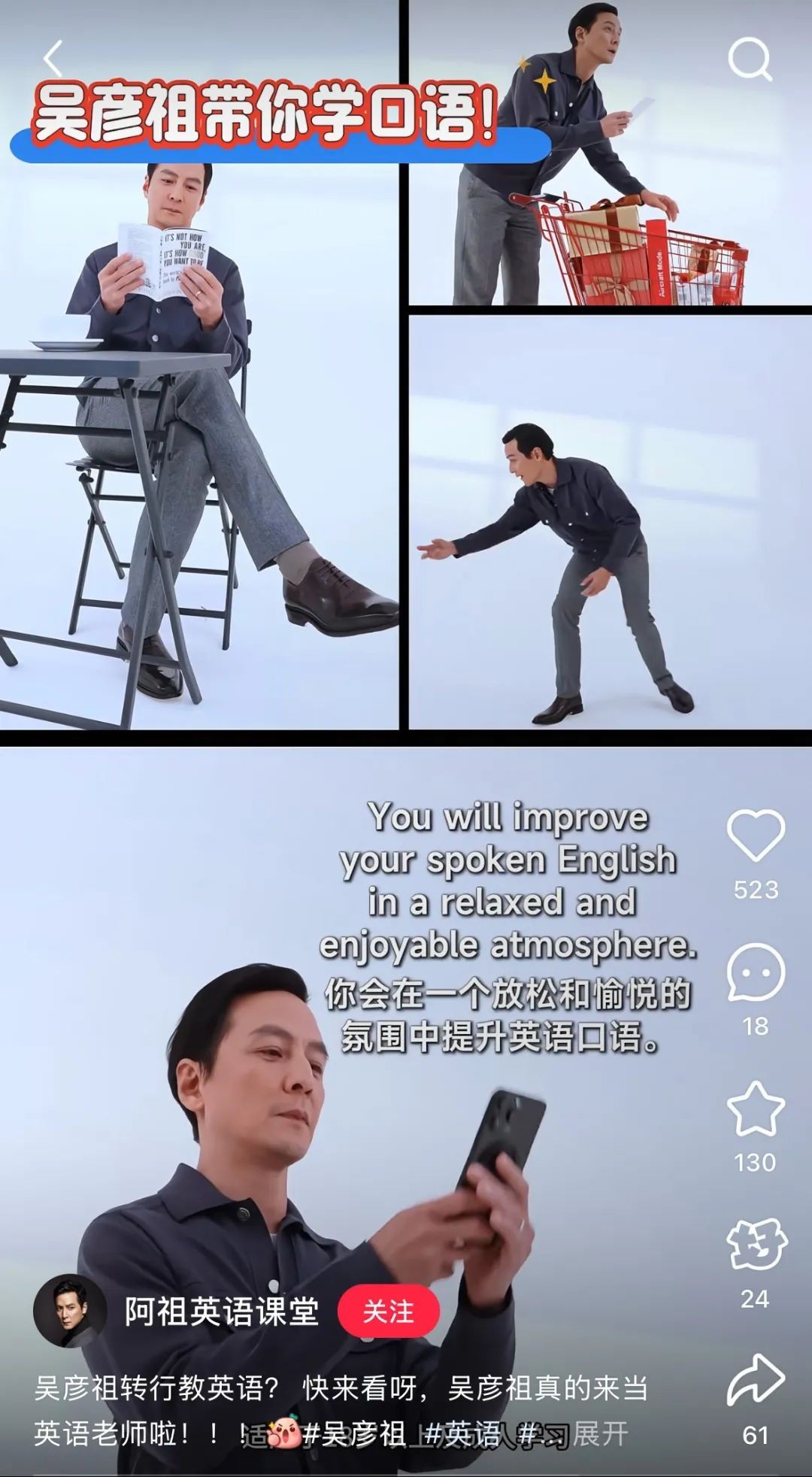 营销界、教育界都开始分析这场教学实验的深层逻辑,教育人士看到了:“AI时代的知识传播,正在从‘权威输出’转向‘情感联结’。”营销人士看到:“吴彦祖的英语课,本质是测试娱乐流量与知识传播的最优配比。”