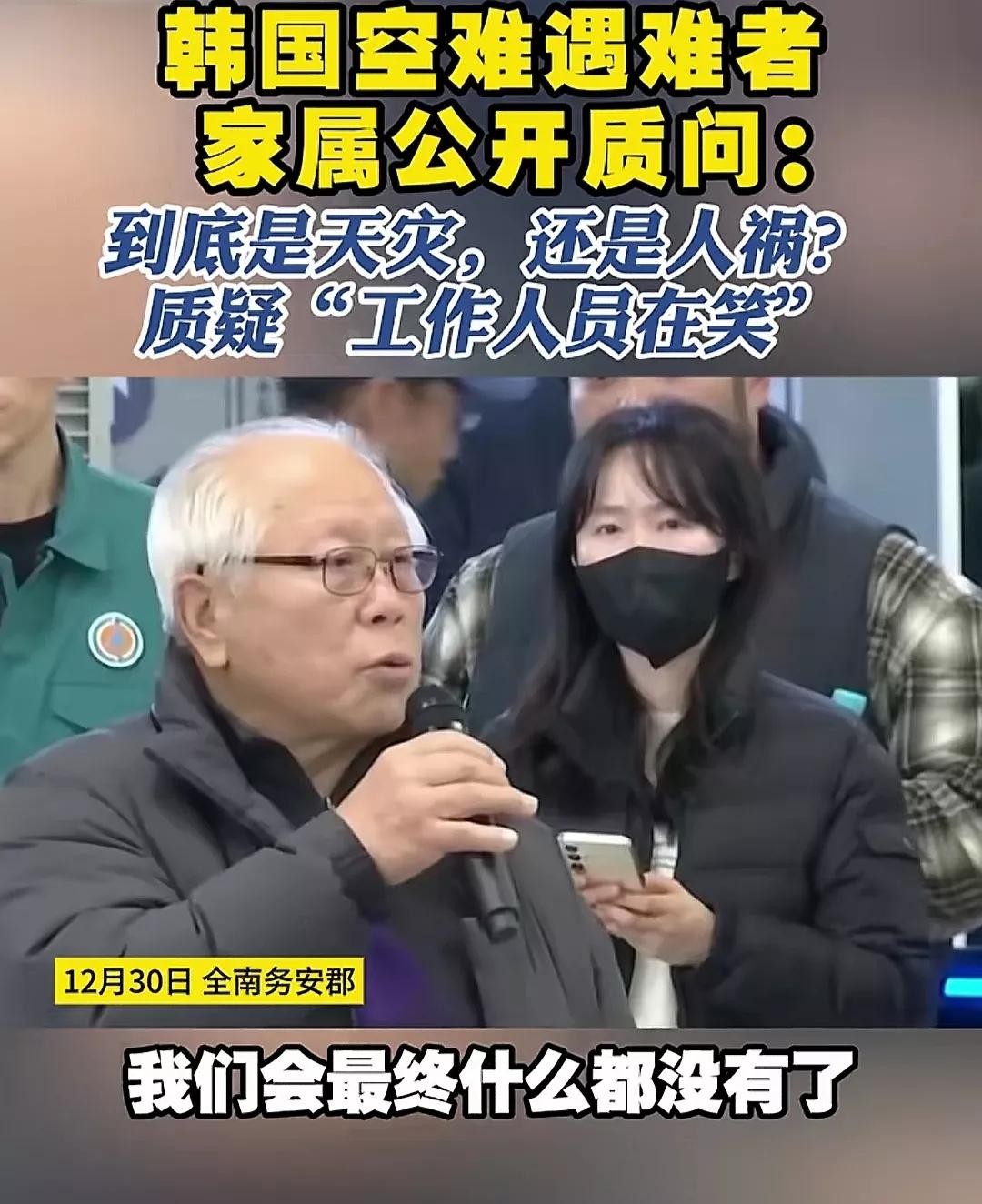有韩国家属不认同这一做法,并提出质疑,飞机失误,到底是天祸,还是人灾,这一点必须要说清楚。