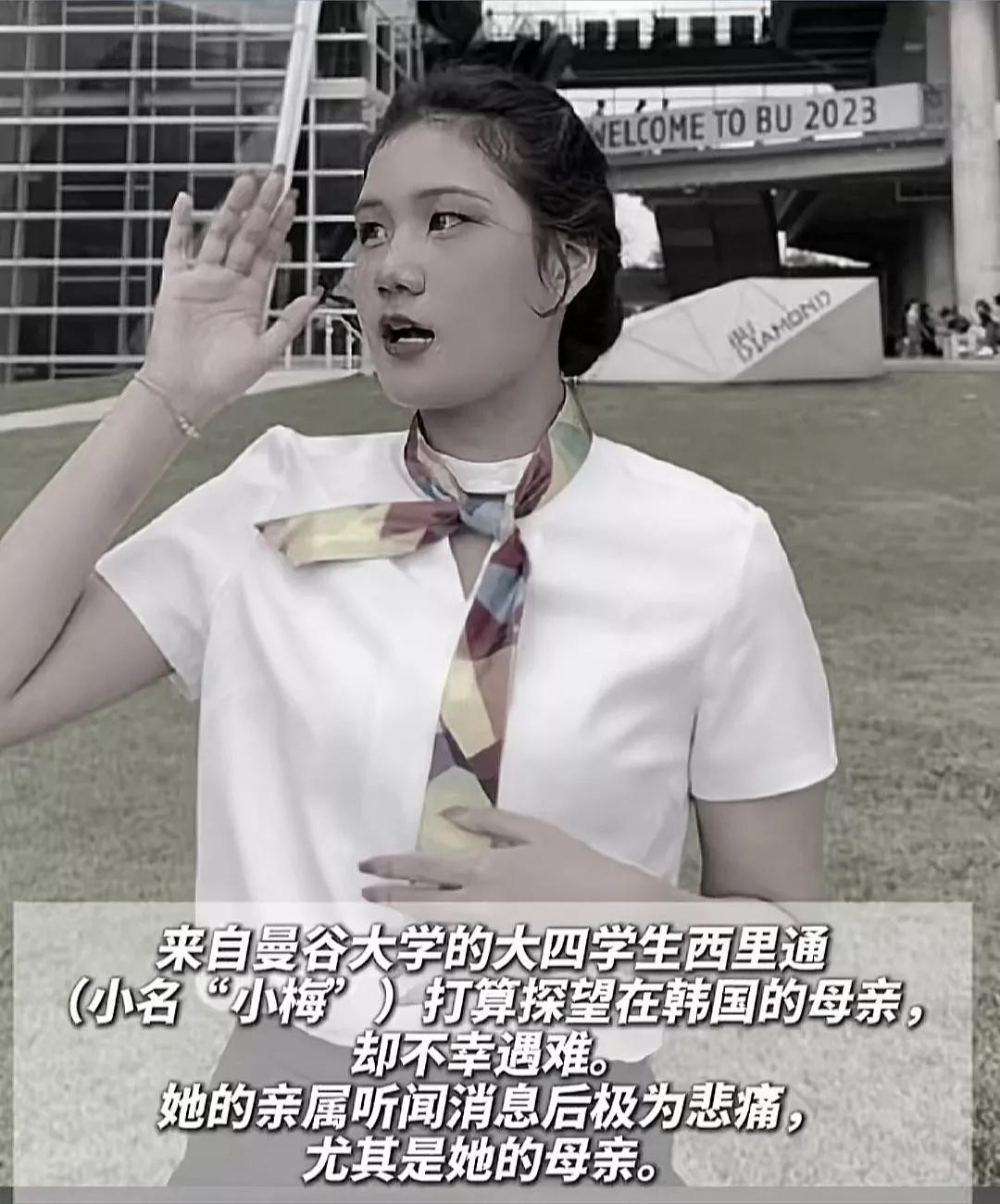她是家族引以为豪的孩子,就读于曼谷大学人文与旅游管理学院航空商务管理专业,原计划毕业后成为一名空乘人员。