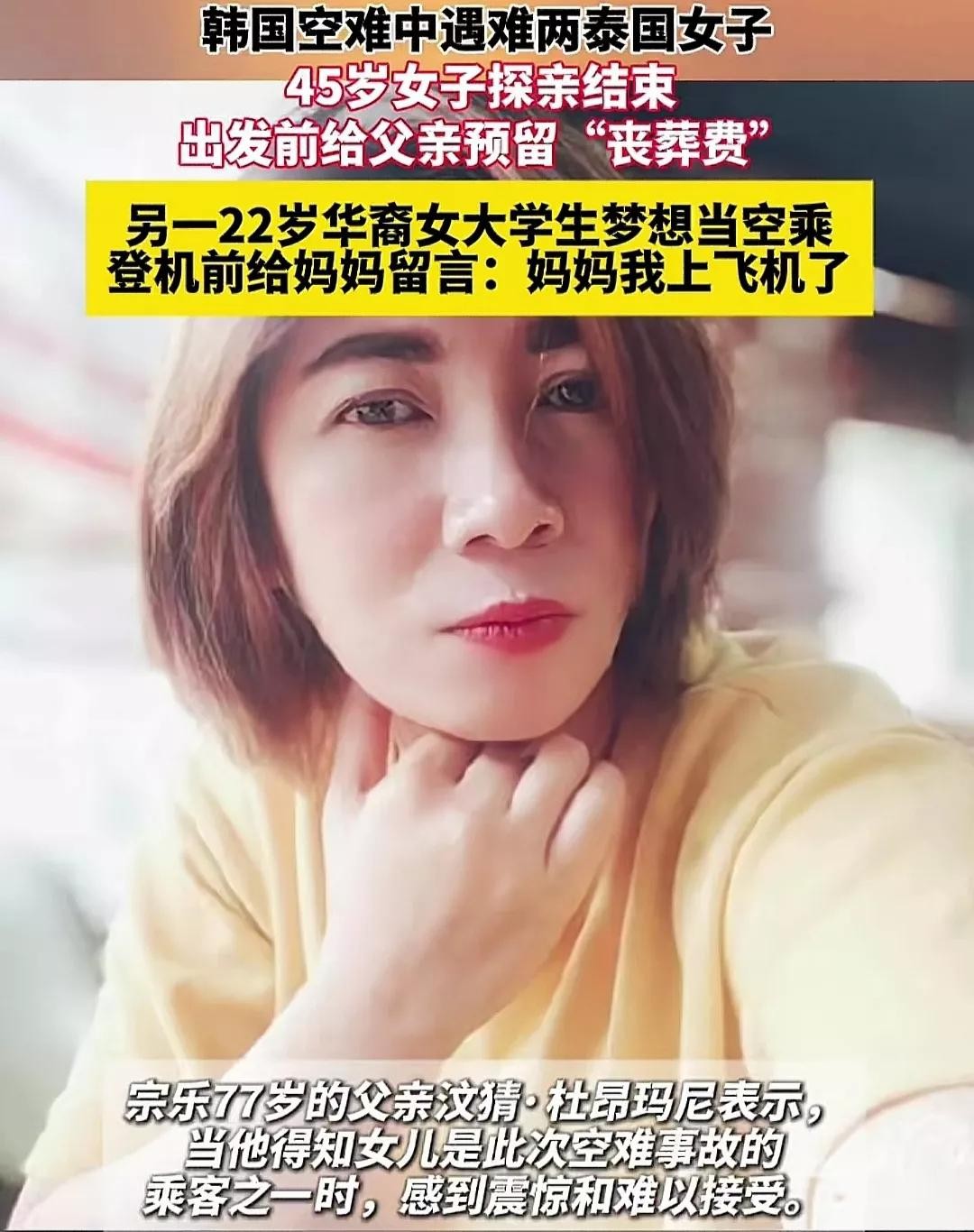 她上飞机前,预感到要出事故,还给父亲转了1万泰铢(2000人民币),让父亲帮忙办葬礼,还说当地有办葬礼的组织。