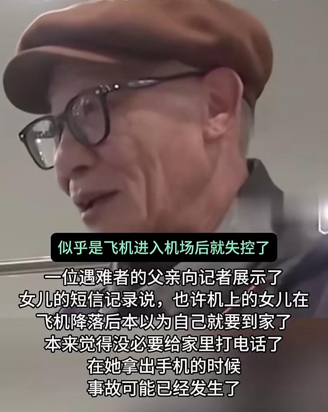 她四十多岁的女儿在飞机上,他反复看了失事飞机的视频,比较宽容的认为,可能飞行员也没有别的选择。