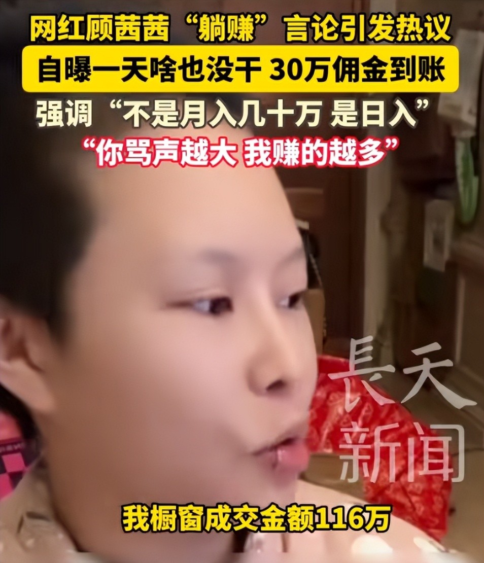 百万网红顾茜茜在直播间称"躺赚"几十万,引发网友激烈讨论。