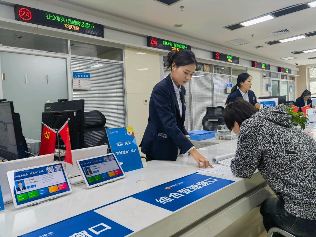咸阳市政务大厅西安-咸阳跨域业务通办窗口。图/陕西网