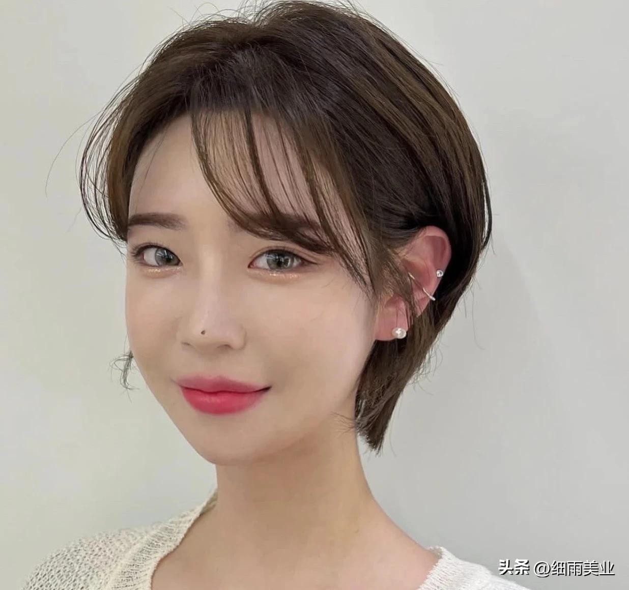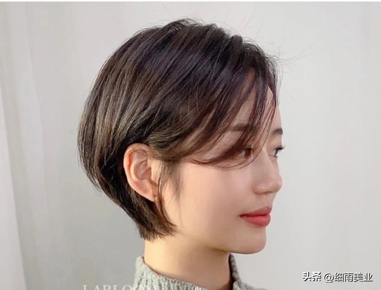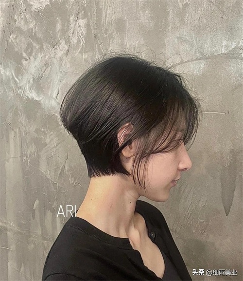 这款超短发有着韩式的味道,可盐可甜,整体发型看起来形态立体,很显发量,搭配法式刘海,让脸型更完美,减龄瘦脸的效果无敌,非常的可爱迷人,同时这款短发给人大气的风范,很适合上班一族以及都市丽人的选择。