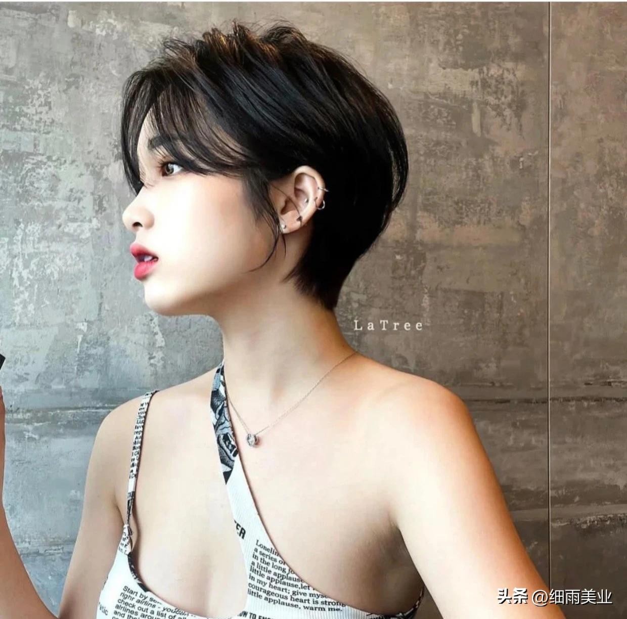 气场十足的超短发,可甜可酷,非常适合喜欢剪短发的女生。打理起来既方便又上镜,简约高级,属于百搭发型中的短发,轻轻松松就能驾驭。超短发能让头型看起来更加的立体感,让后脑勺看起来饱满精致,瘦脸减龄效果超级棒,也是高级感满满,侧颜也是好看至极,设计的发型层次感分明,可爱又好看!