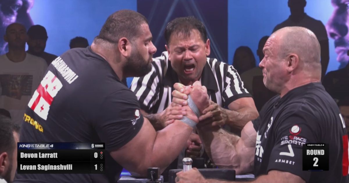 然而,真正的巅峰对决还在后头。2022年,勒万在拉瑞特王4的赛场上,与加拿大腕力传奇德文·拉瑞特狭路相逢。这场比赛被誉为腕力史上的巅峰之战,吸引了无数眼球。勒万犹如一头下山猛虎,以摧枯拉朽之势,以6-0的压倒性优势将德文击败,赢得了这场世纪之战。