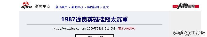 信息来源:新浪网 2006-05-19 1987徐良英雄桂冠太沉重