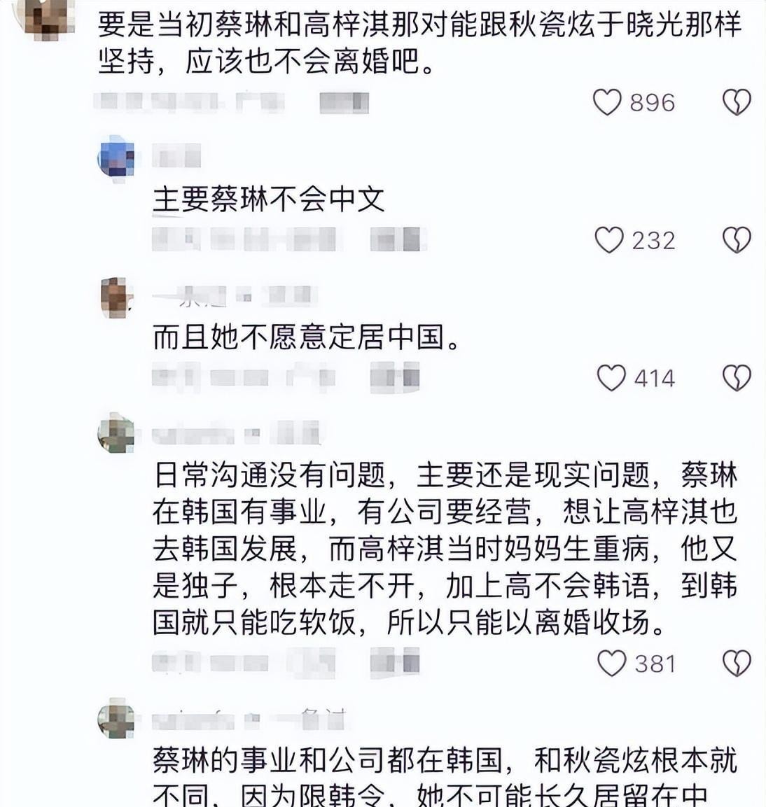 有人感叹秋瓷炫真懂事,也有人理解蔡琳想追求自由的心情。