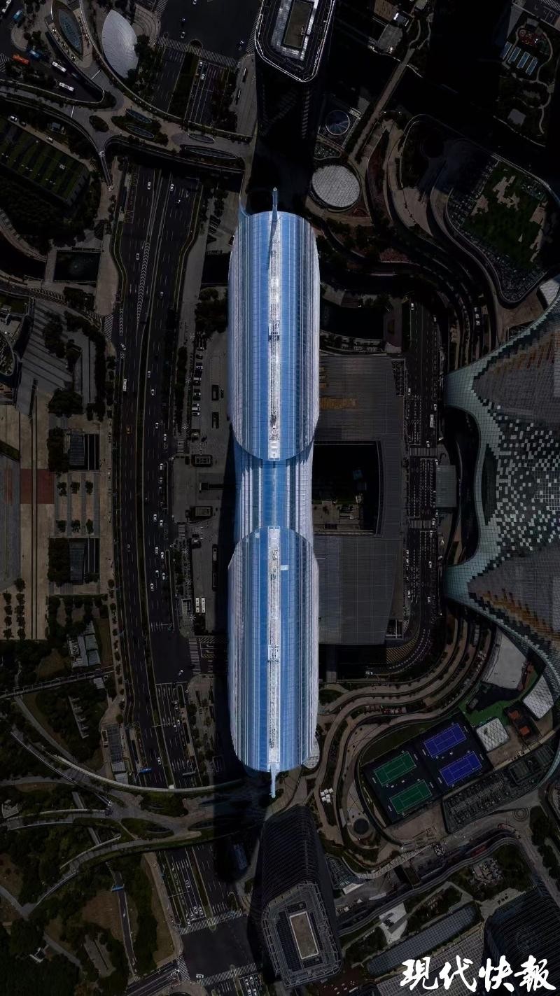 毛薇薇表示,拍摄的初衷,首先是想通过这样一组照片反映园区30年的发展所产生的巨大变化,展示园区的独特魅力;二是觉得从俯瞰的视角捕捉建筑之美很有趣,这些都是大家平常生活工作的建筑,在地面上往往看不到建筑顶部形状,但换个视角就能收获不一样的风景。“比如东方之门,我们平常见到的照片都是连体门形双塔结构,但是在俯拍的角度,就是一个‘I',再比如金鸡驿06号馆,是一个‘停靠’在苏州金鸡湖畔的帆船型建筑,但是在俯视的角度下,圆形的建筑结构加上长长的楼梯,组成了一个’Q'。”