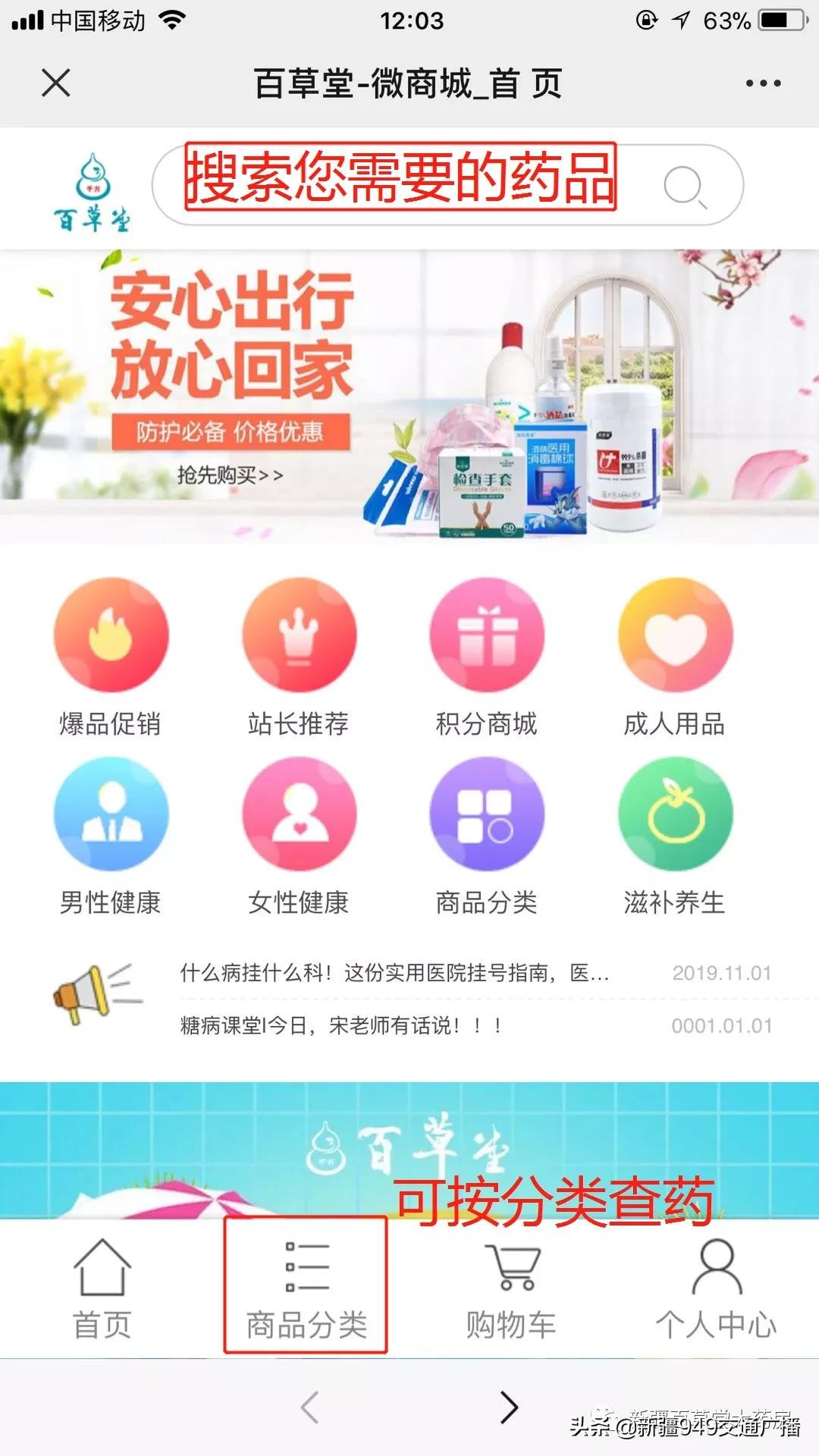 第一步:扫描二维码或搜索关注公众号百草堂大药房。