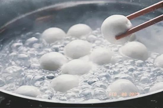 2.火候控制:先大火煮,等元宵浮起后转中火再煮3至5分钟,期间可加2至3次少量冷水,让元宵内外熟透,口感更软糯。