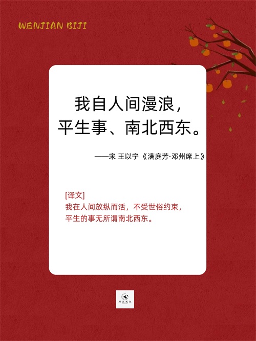 四、我自人间漫浪,平生事,南北西东。