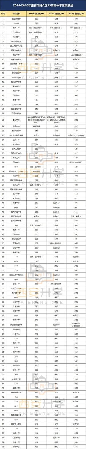 2019年西安中考84所高中学校录取分数线汇总!附2016-2018分数线