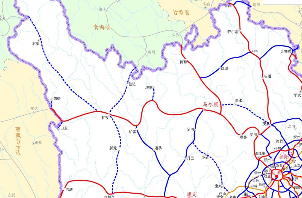 按照规划,到西藏的高速公路通道从成都出发,自东向西经汶川、马尔康、甘孜、白玉、德格,抵达川藏交界处;到青海的高速公路通道从成都出发,自南向北经汶川、理县、阿坝到青海久治。2条通道,都要经汶马高速通行。