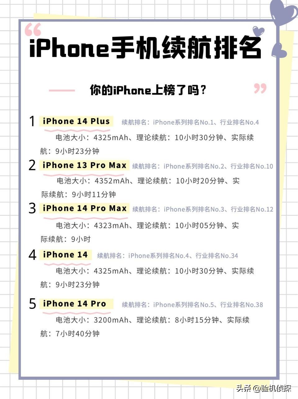 续航排名:iPhone系列排名No.1、行业排名No.4