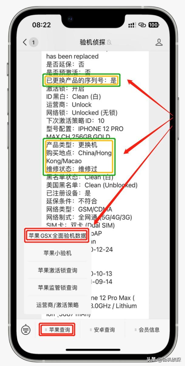 就比如这台iPhone 12 pro max,外观完美无瑕疵,机器自身数据显示正常,但通过本侦探的“苹果GSX全面验机数据”识别出这是一台“改码机”,所以建议大家在入手苹果产品前看一下本侦探的数据,以免上当受骗。