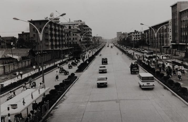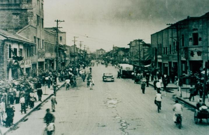 彼时这里虽未高楼林立,但人群依旧熙熙攘攘,摩肩接踵。街道两旁挤满了各种铺子,汽车和自行车在宽阔的街道上穿梭,已是繁华初现的样子。