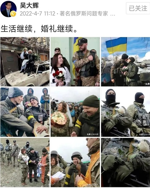 乌克兰军人在战场上举行婚礼——多么热爱和平啊