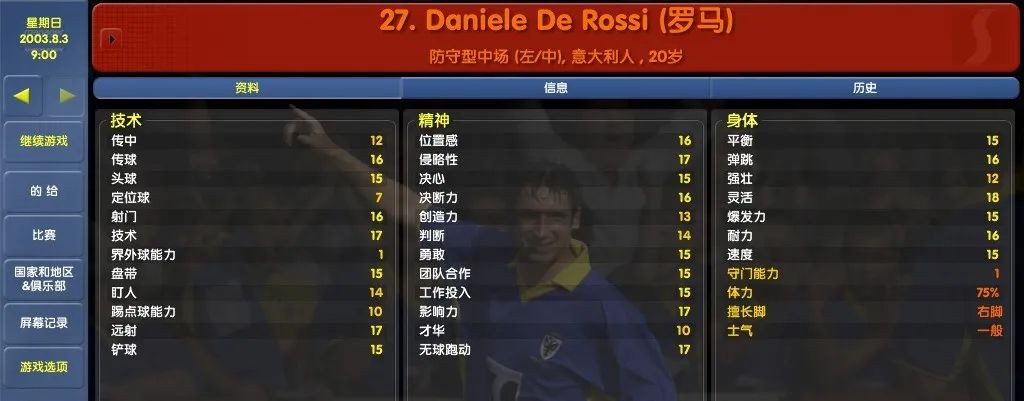 然后就是那款经典的CM0304,拿到这个游戏我惊讶于数据的真实,德罗西的全能数据,让每个玩家都爱不释手。