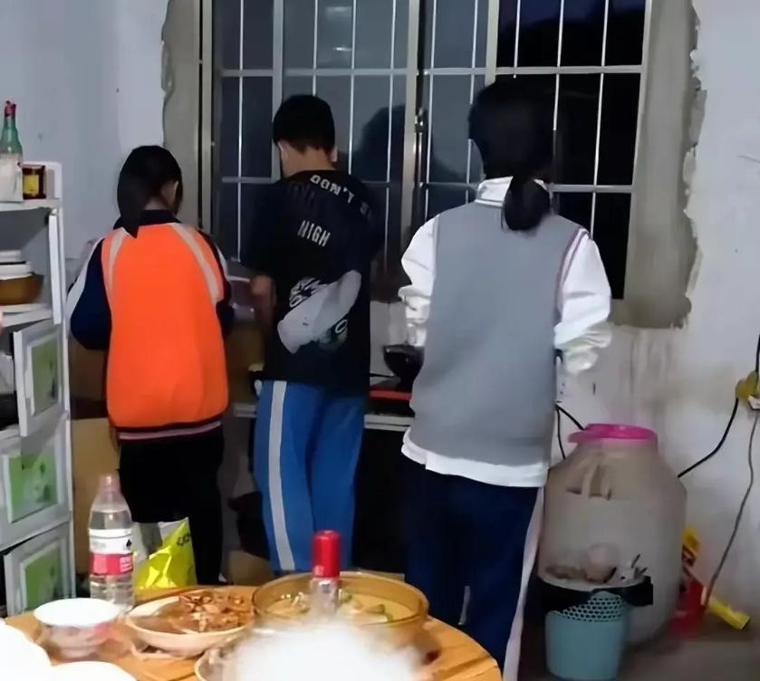 我认为,有的时候真的一分钱难倒英雄汉。可能是有记者朋友去他们家吃饭,要了解情况,这位父亲口袋应该真的没钱。但是肉菜、烟、酒这些在农村是可以挂账的,有客人上门,农村人就是这么淳朴的。或许这些菜是这个戴眼镜的带过去的。